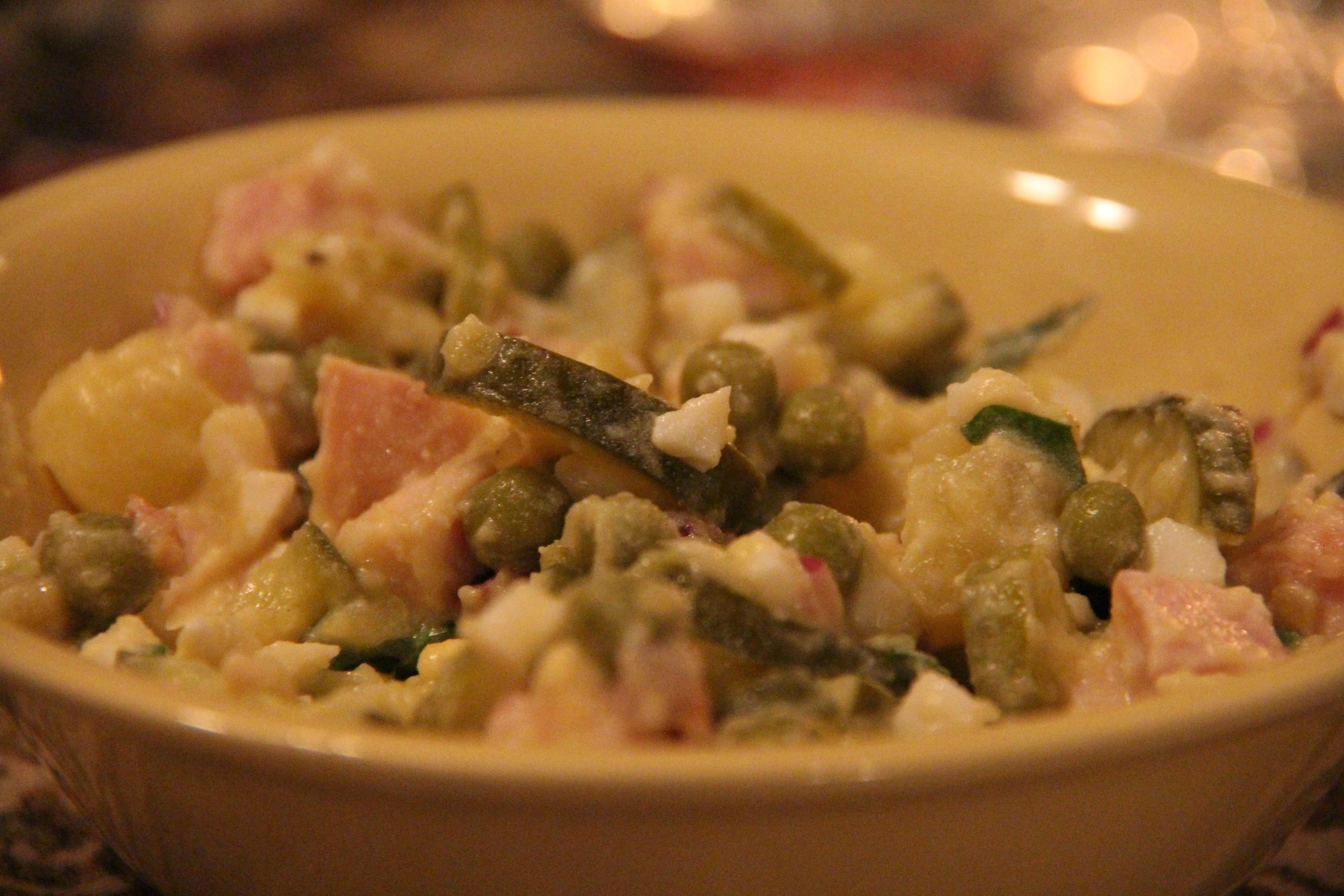 Ингредиенты для приготовления Оливье с солеными огурцами: