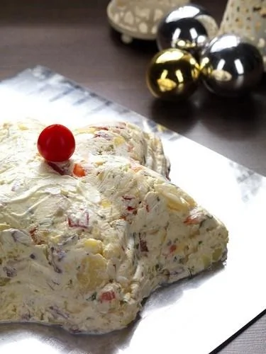 Оливье с красным сладким перцем и кислым яблоком