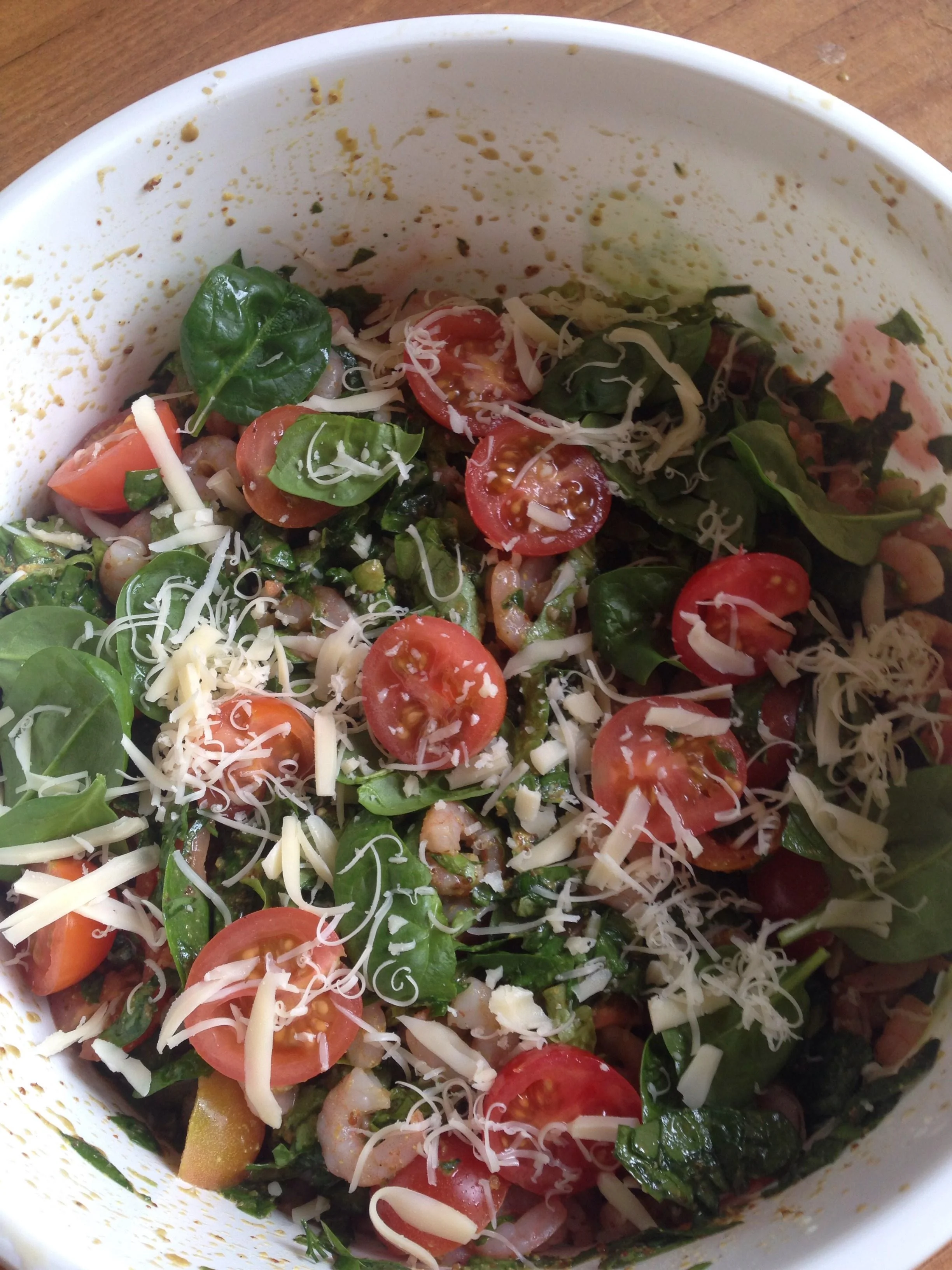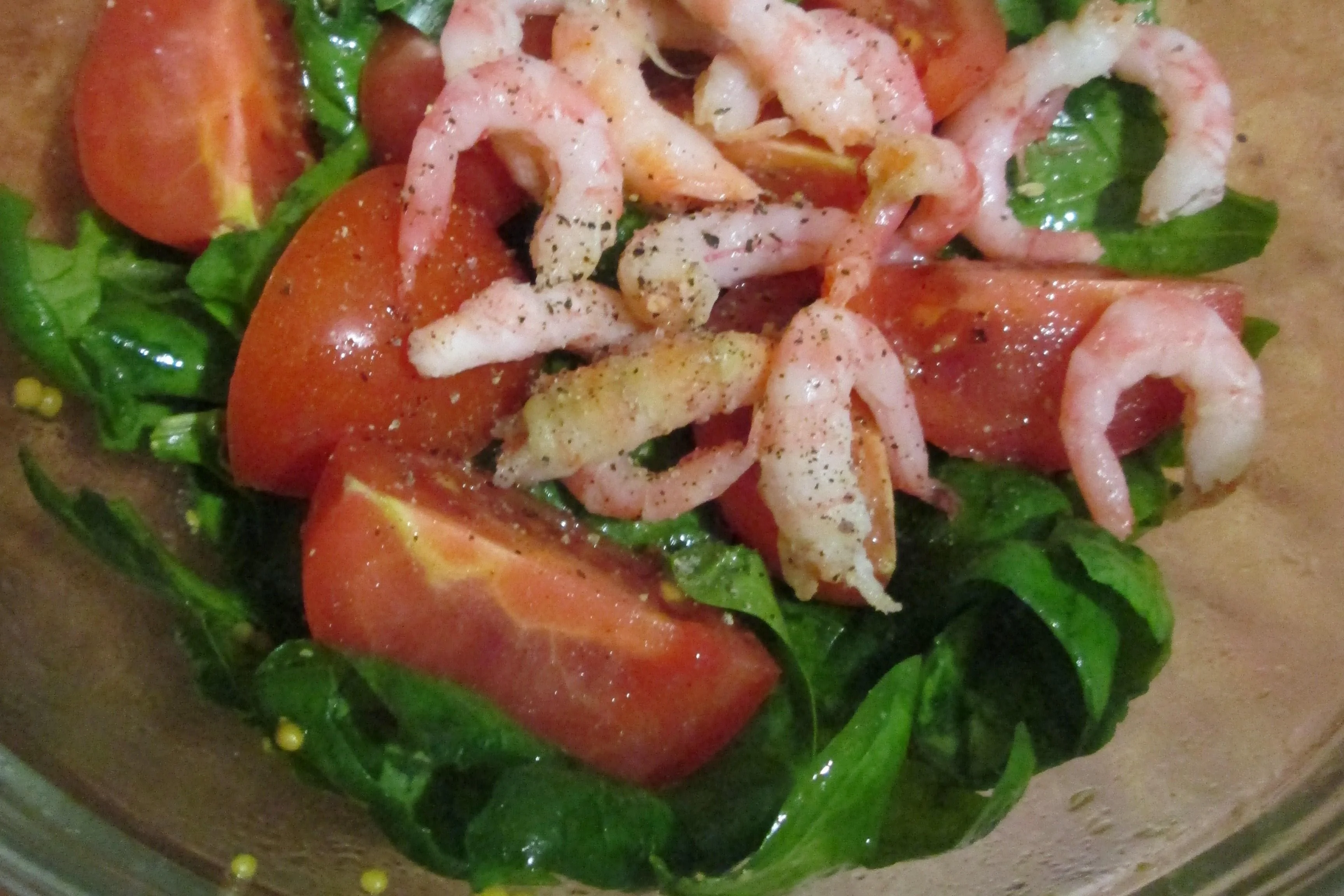 Салат из шпината и креветок