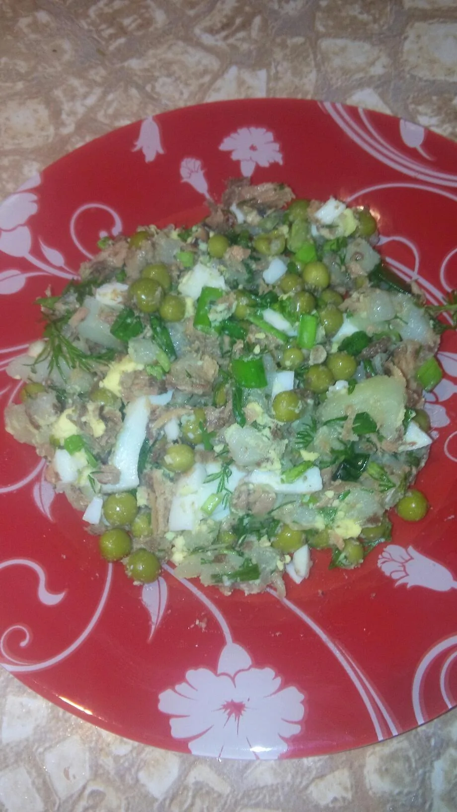 ШАГ 3 Переложите картошку в миску вместе с ломтиками тунца и яйцом.