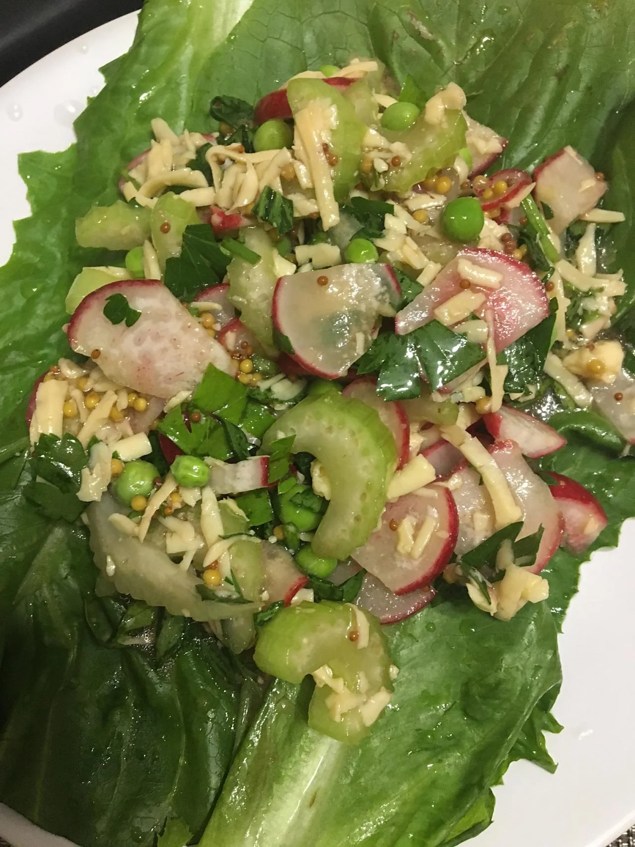 Салат с редисом, сельдереем и зеленым горошком