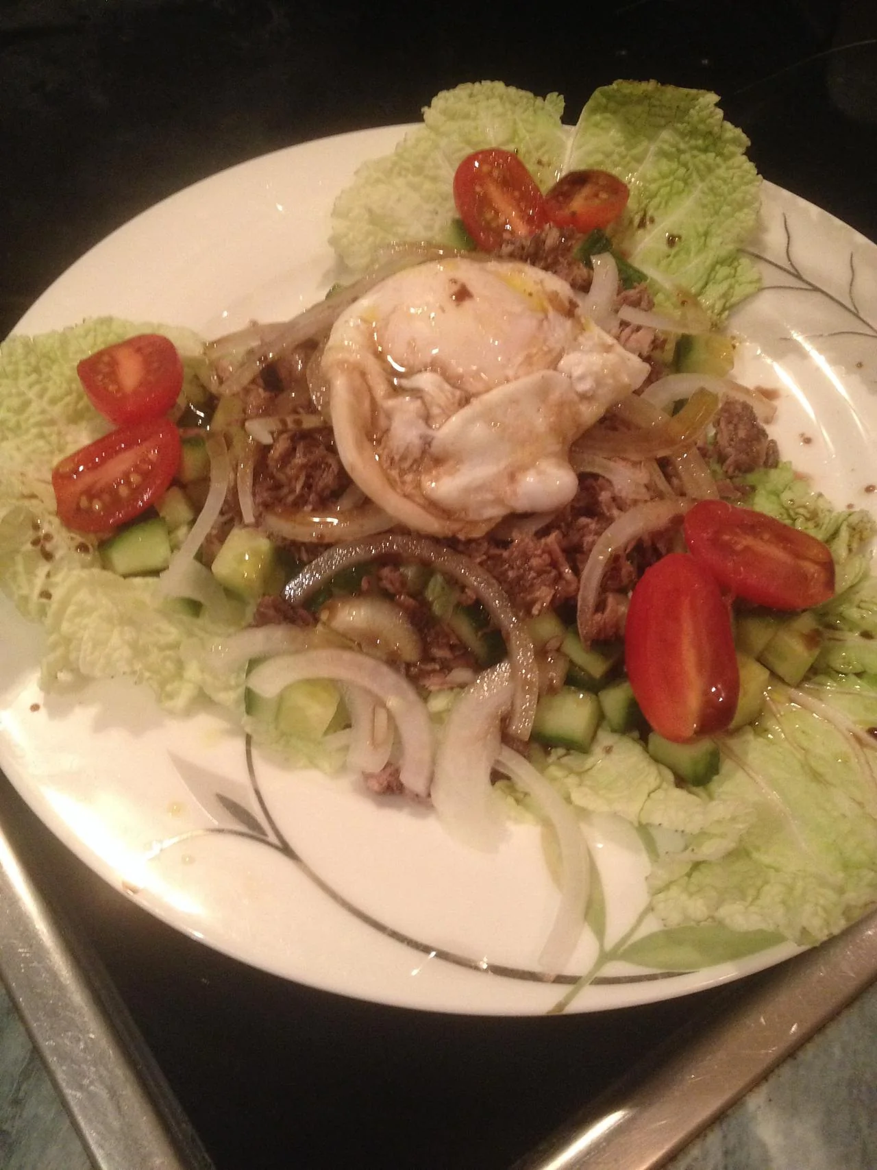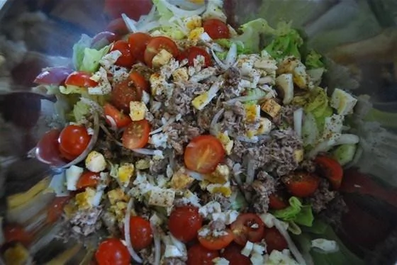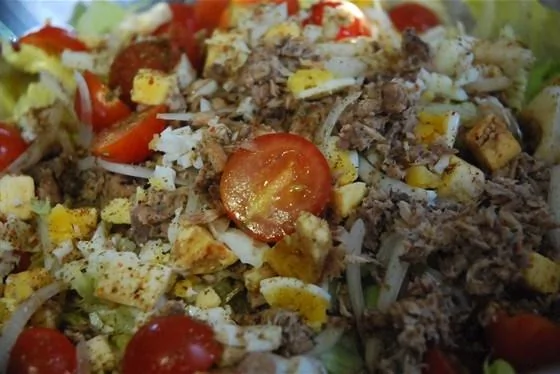 Салат с тунцом и яйцом пашот