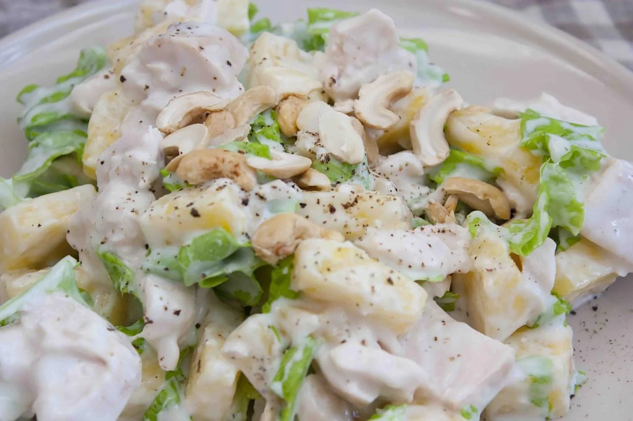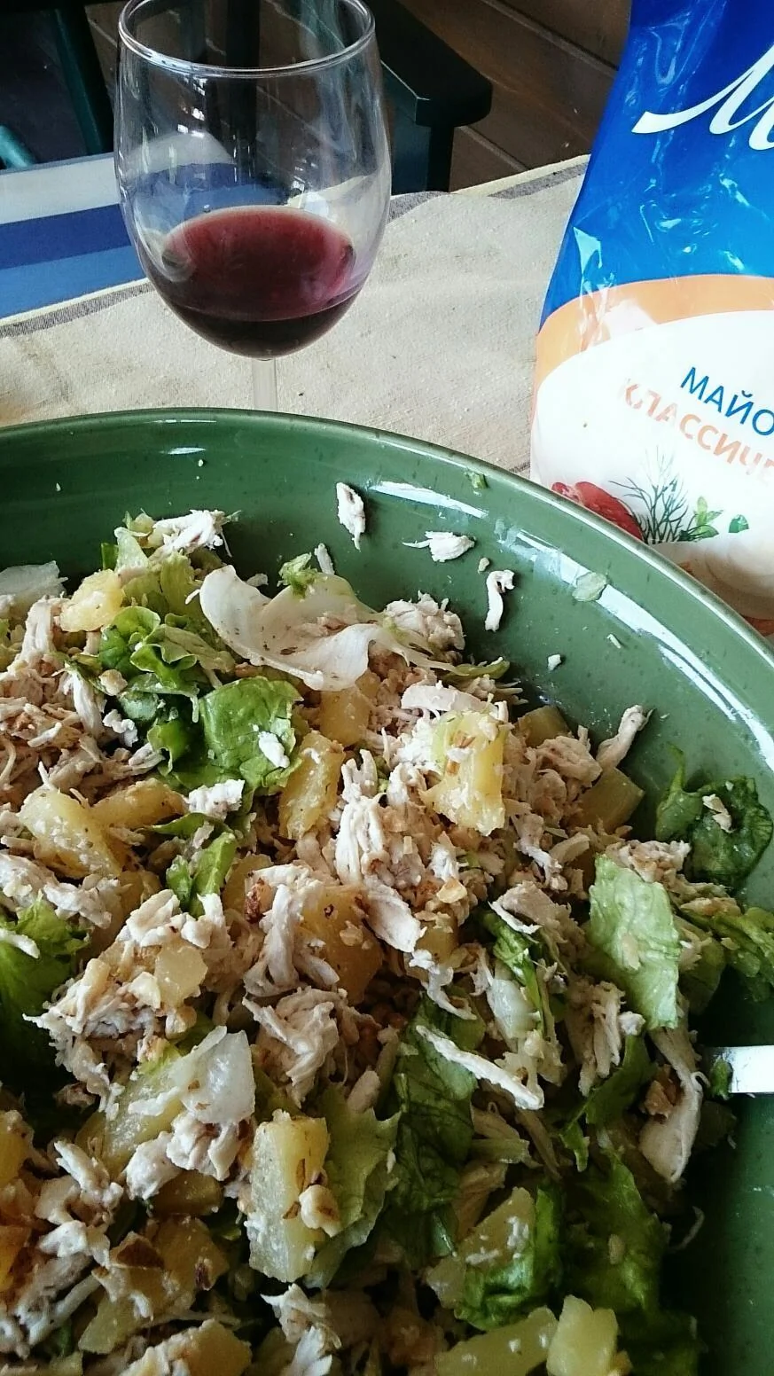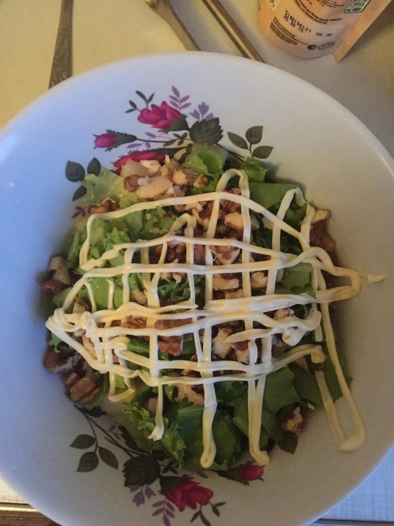 ШАГ 3 Заправляем майонезом и сверху посыпаем грецким орехом.
