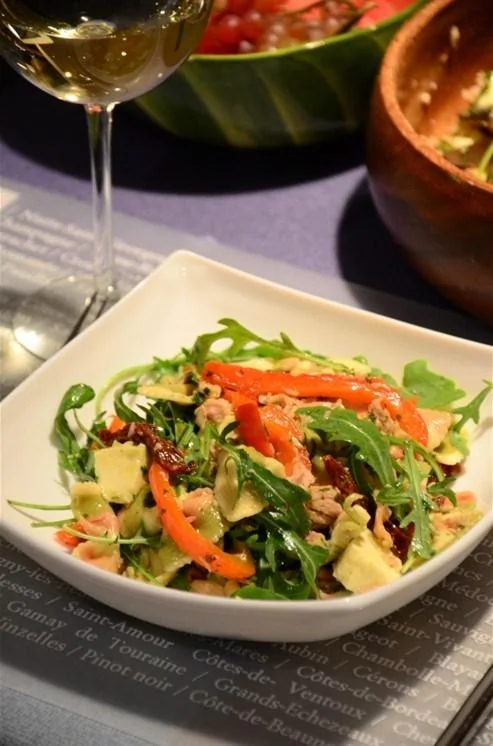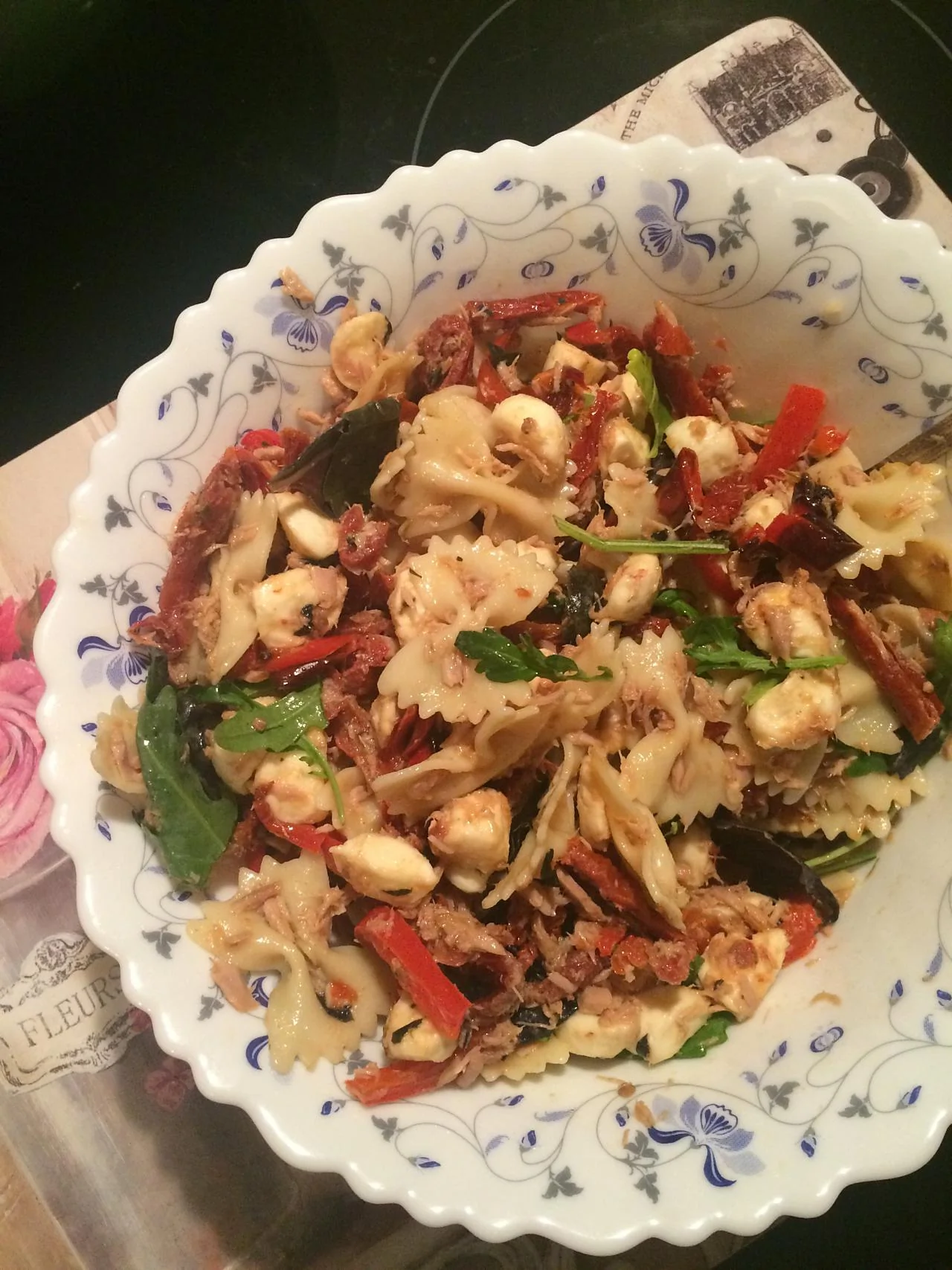 Итальянский салат с пастой, тунцом и вялеными томатами