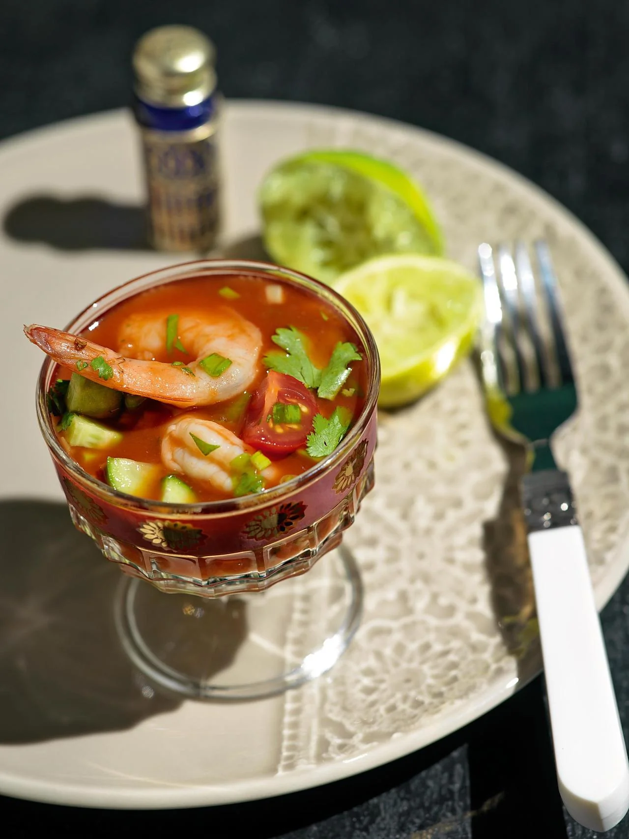 ШАГ 1 Смешать томатный сок, сок апельсинов и лаймов, кетчуп, вустерширский соус, табаско, текилу, приправить солью и черным молотым перцем. Все жидкие компоненты должны быть очень холодными.