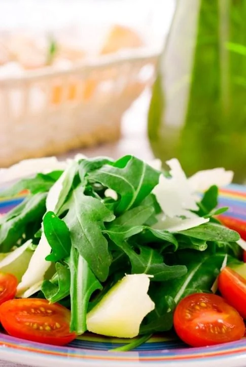 Салат из рукколы с грушей, пармезаном и бальзамическим уксусом