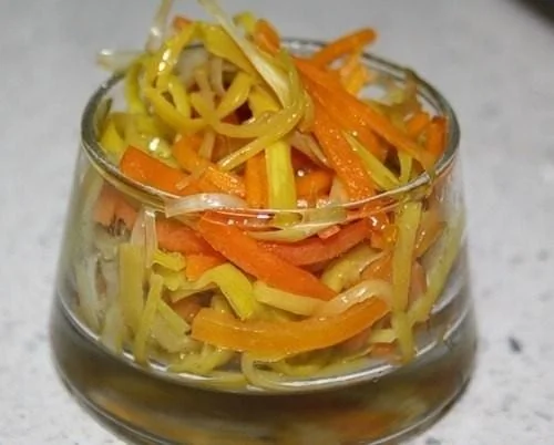 Ингредиенты для приготовления Теплый салат из моркови и лука-порея: