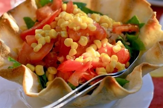 ШАГ 1 Мелко порезать все овощи и грибы, добавить кукурузу. Тунца желательно выложить из банки вместе с маслом.