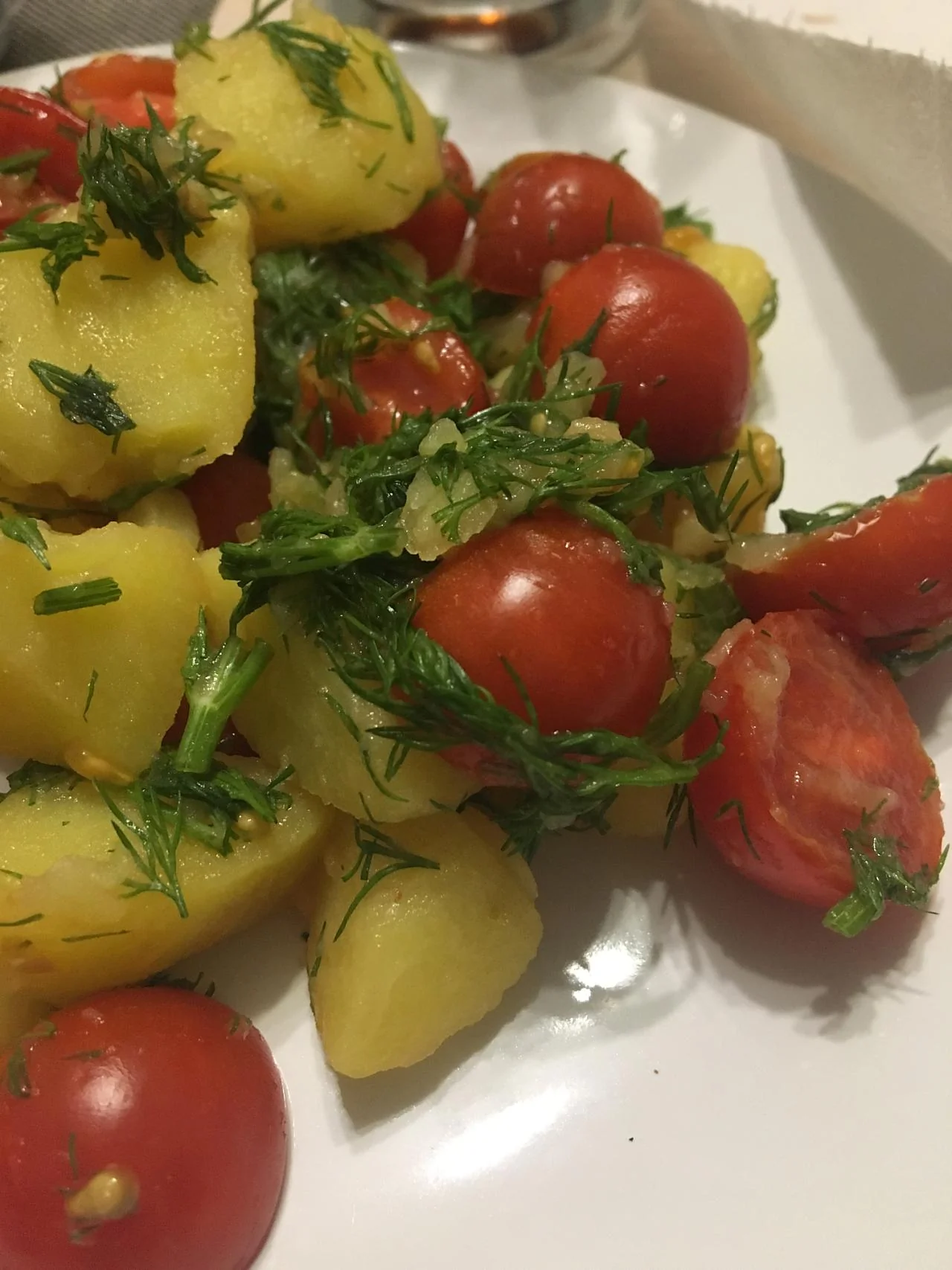 Ингредиенты для приготовления Салат из молодого картофеля и помидоров: