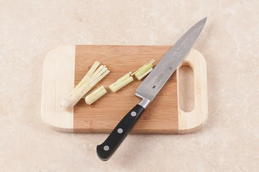 ШАГ 2 Раздавите и крупно порежьте лемонграсс.