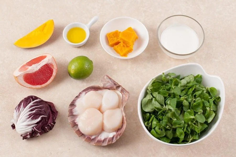 Ингредиенты для приготовления Салат корн с морским гребешком и манговым соусом: