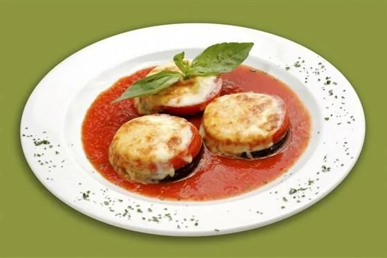 Салат из слегка поджаренных баклажанов и запеченных помидоров с сыром фета