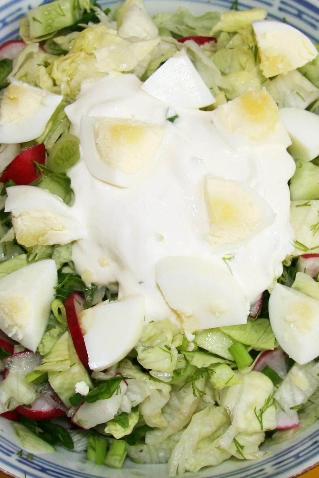 Весенний салат с редисом, огурцами и яйцами
