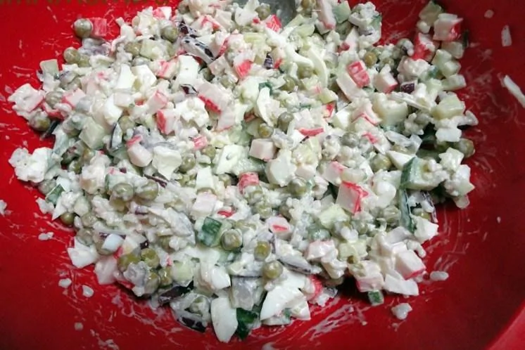 Салат с крабовыми палочками, огурцом и зеленым горошком