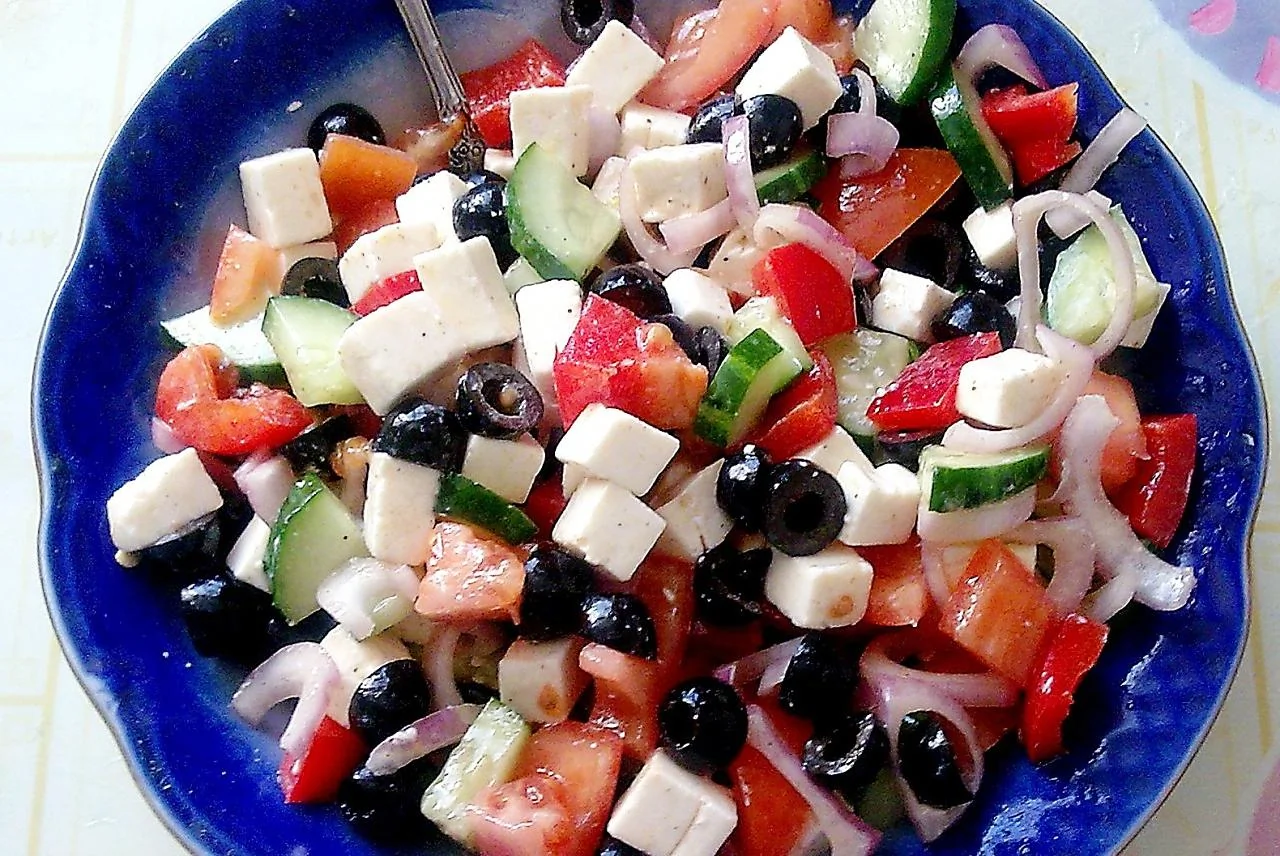 Ингредиенты для приготовления Греческий салат с плавленым сыром: