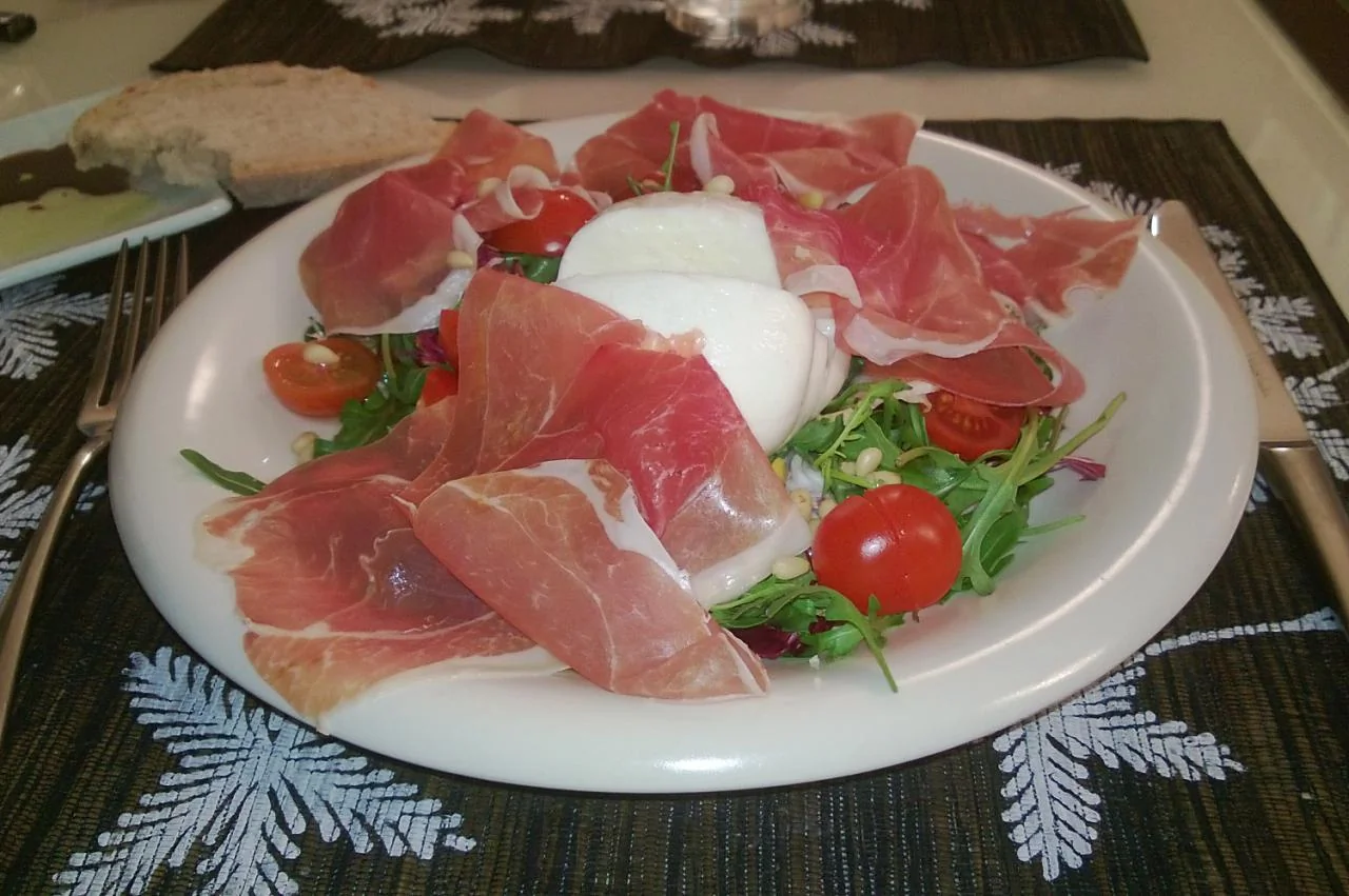 Ингредиенты для приготовления Салат с пармской ветчиной, моцареллой и рукколой: