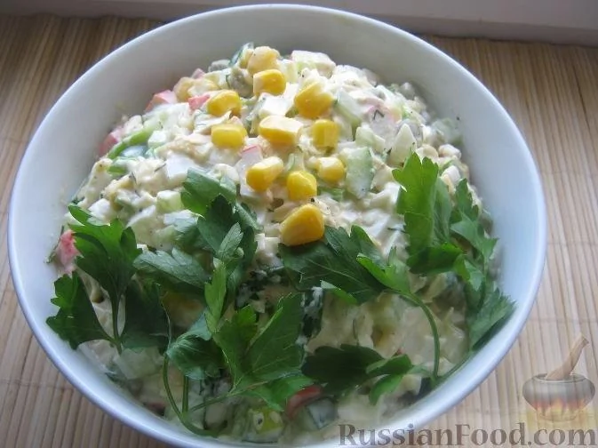 Крабовый салат со свежими огурцами