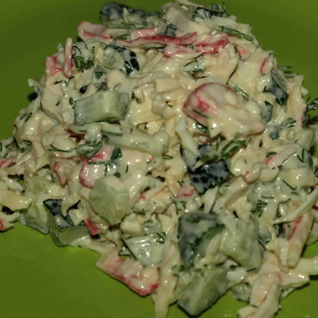 Салат из крабовых палочек с огурцом, сыром и домашним майонезом
