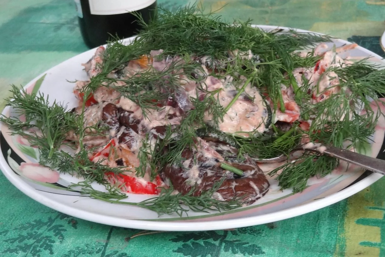 ШАГ 8 Немного остудите овощи и смешайте их с майонезной заправкой, посолите и поперчите. Украсьте веточками укропа.