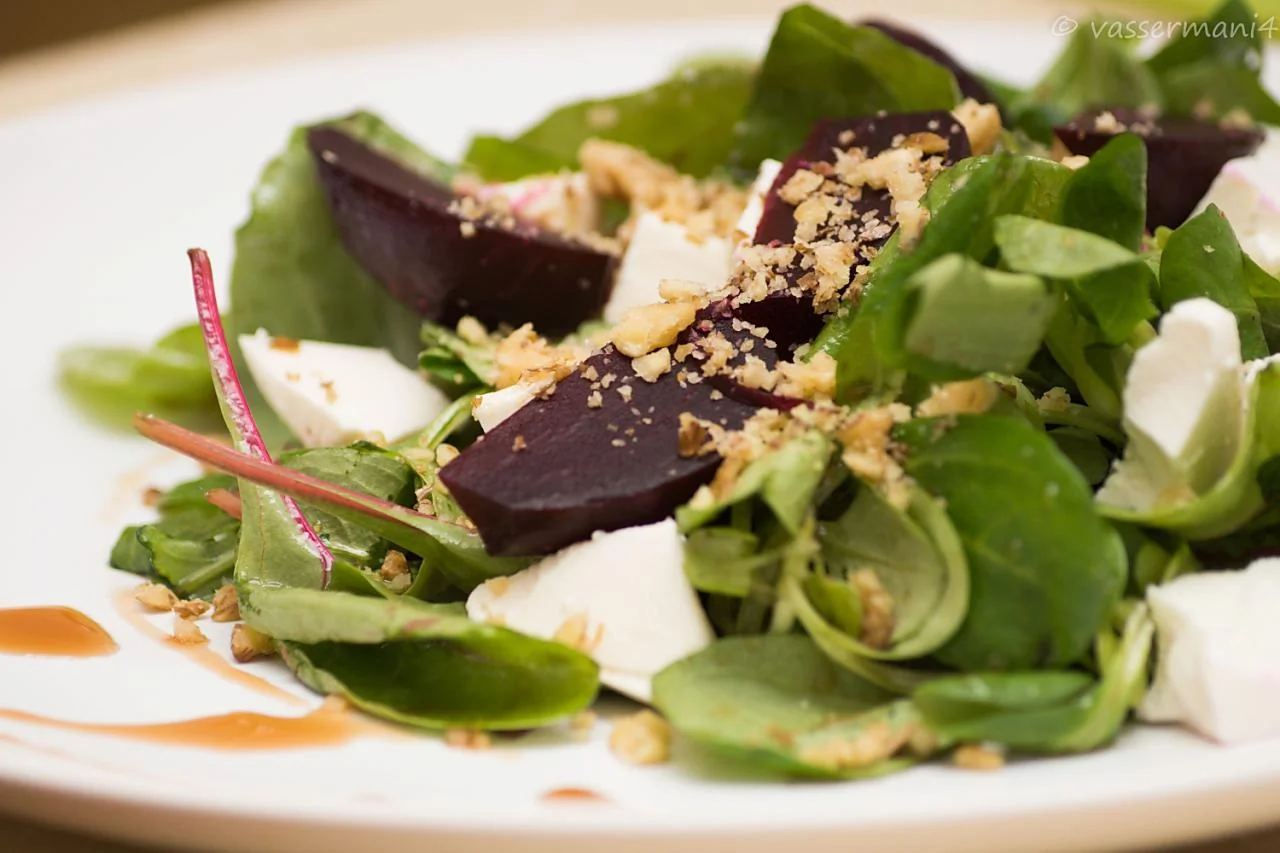 Салат с запеченной свеклой, сыром фета и соусом наршараб