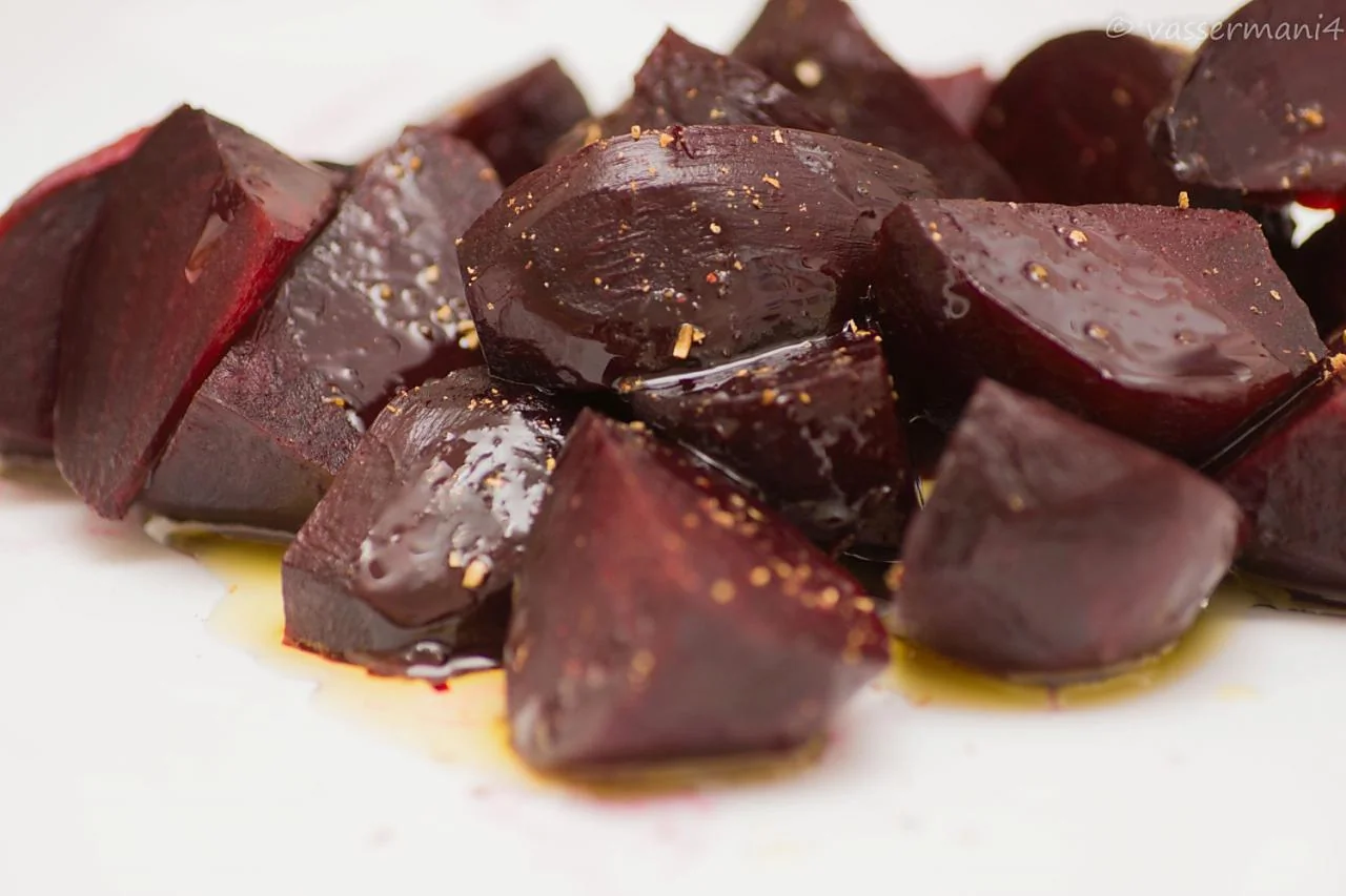 ШАГ 1 Свеклу запек с оливковым маслом в фольге (40 минут) и разрезал на 8 долек.