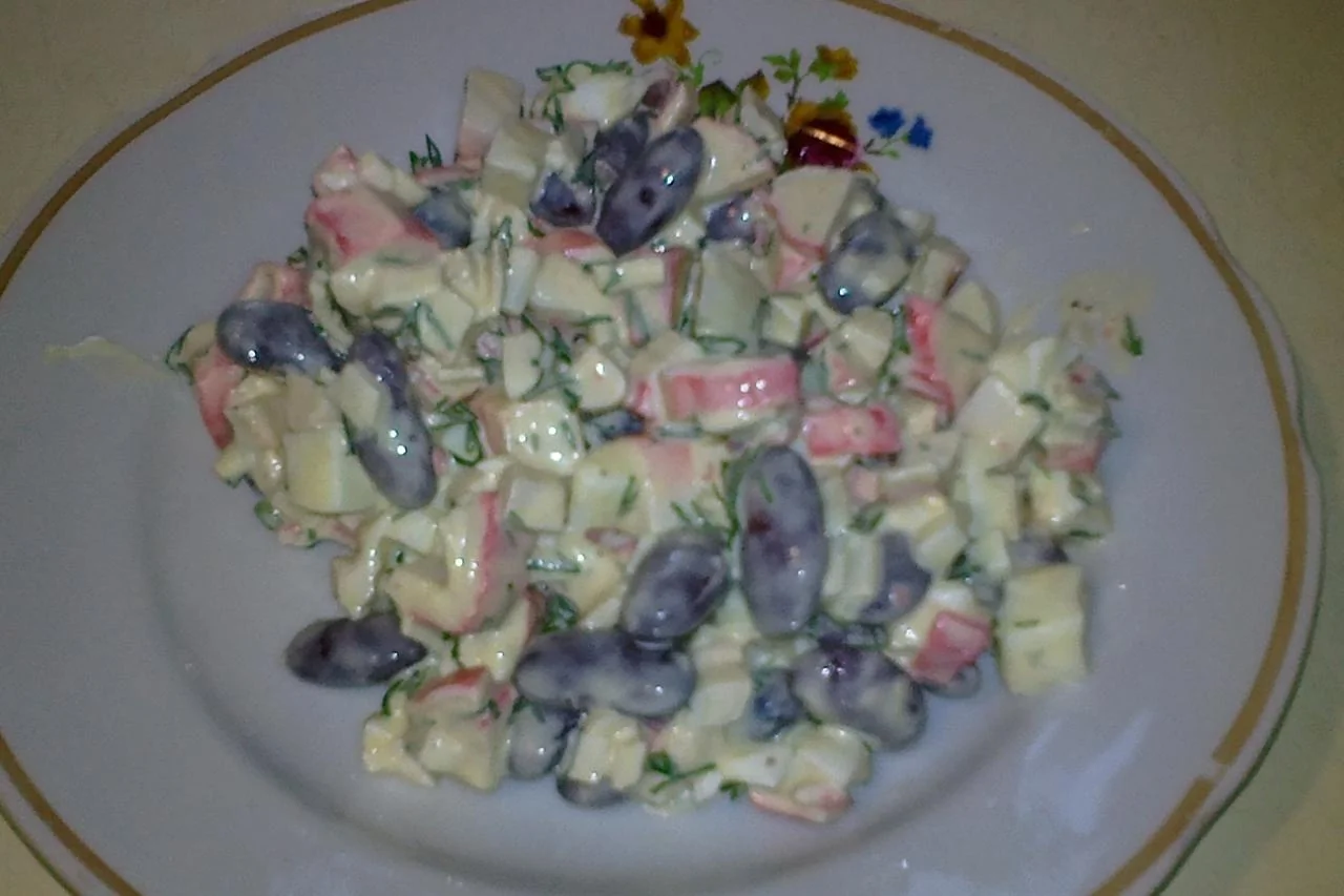 Ингредиенты для приготовления Быстрый салат с фасолью и крабовыми палочками: