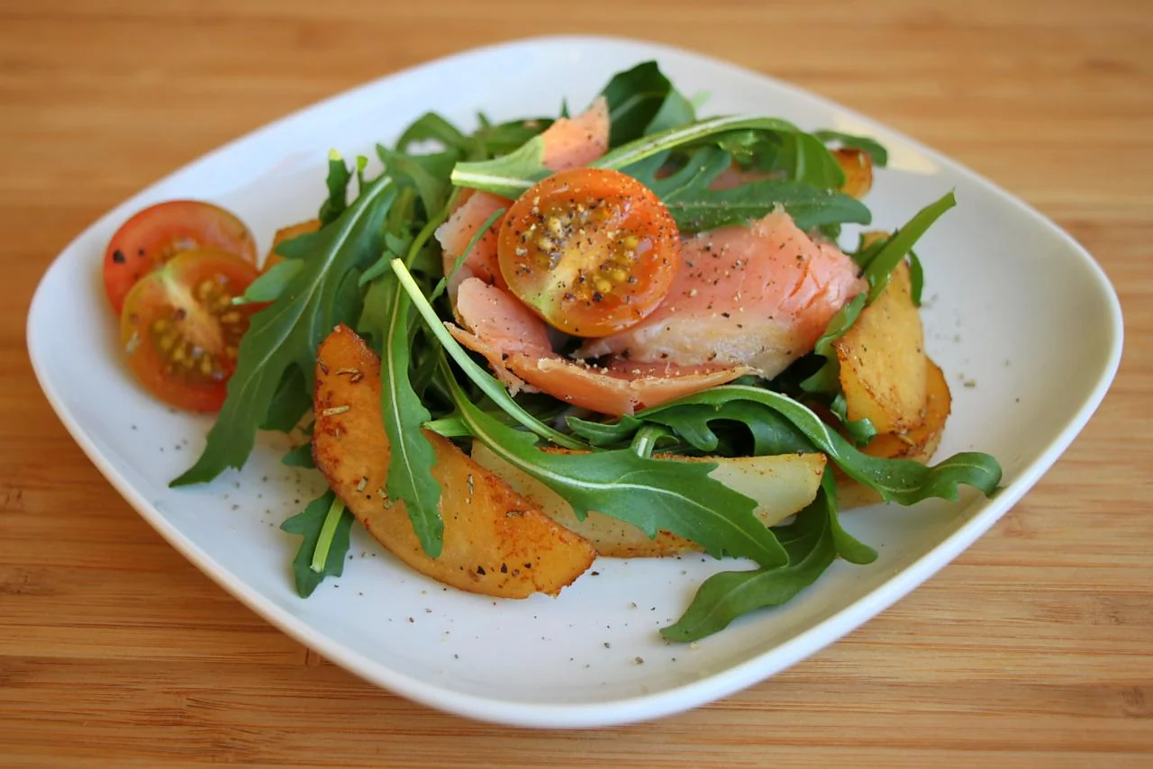 Ингредиенты для приготовления Салат со слабосоленой форелью, рукколой и картофелем: