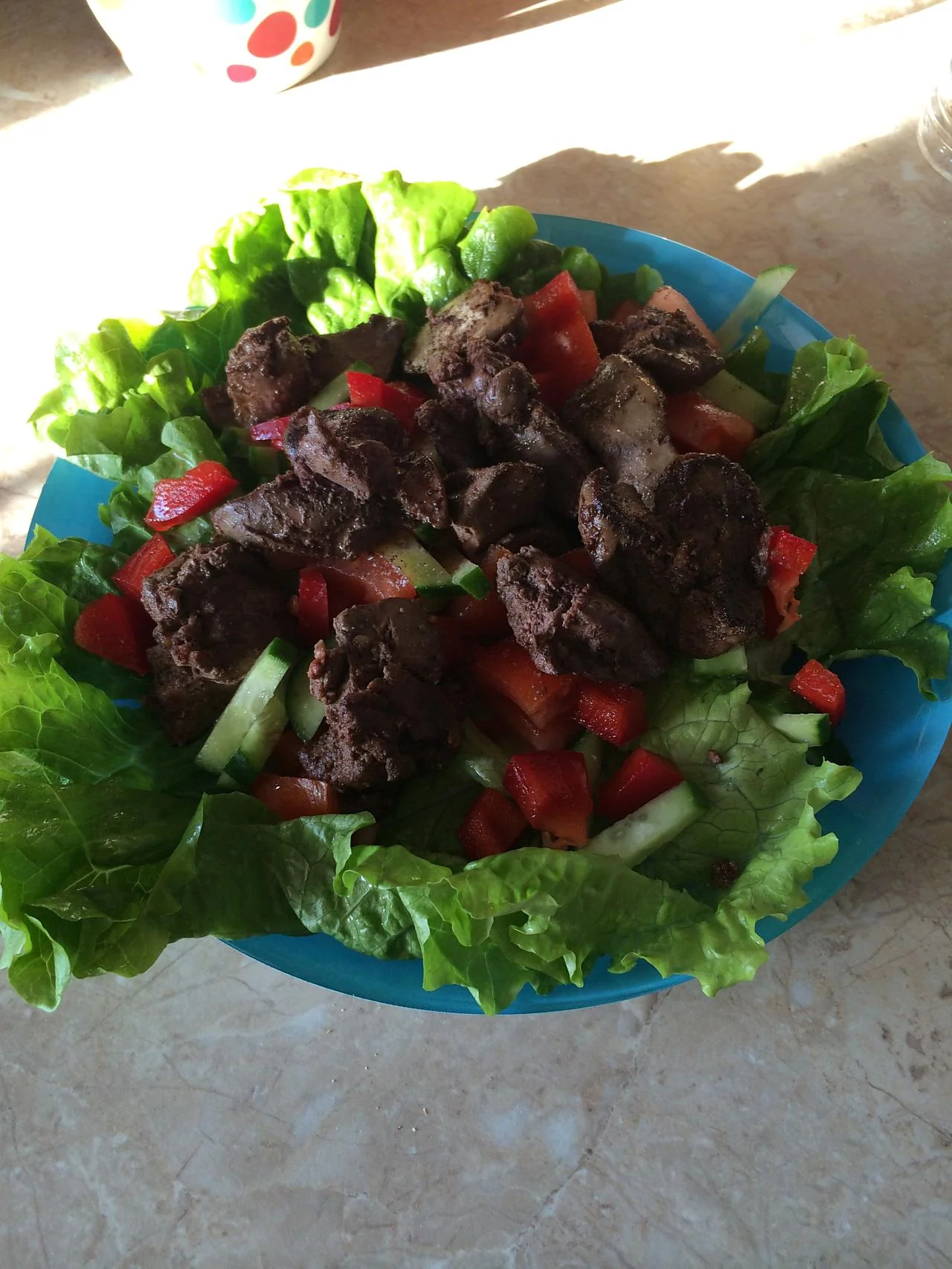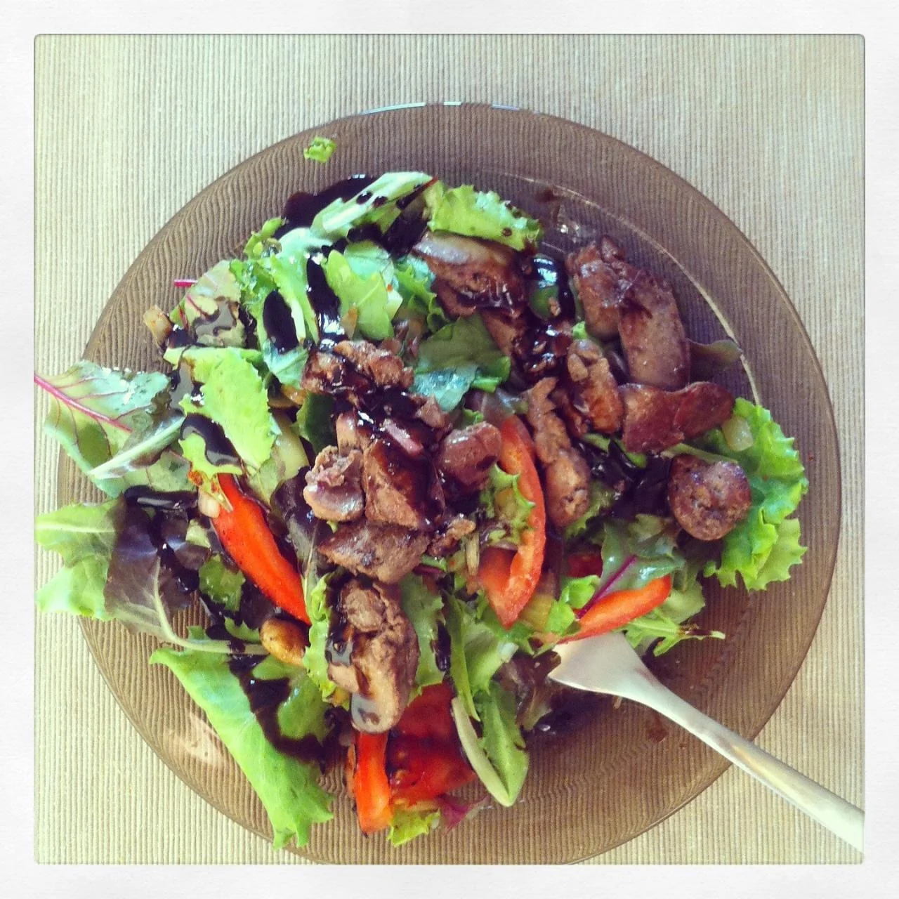 Салат с теплой печенью под бальзамическим соусом
