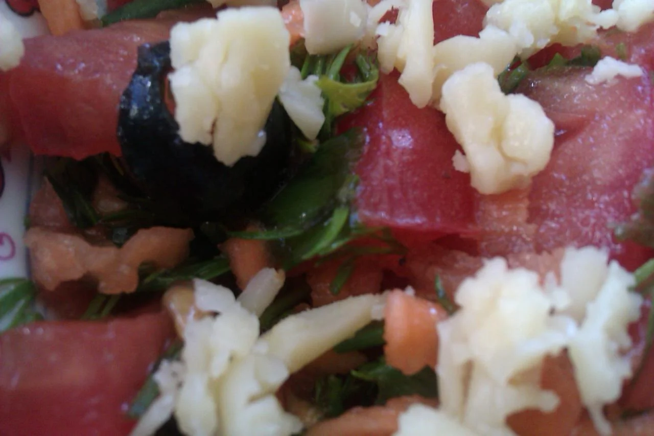 Ингредиенты для приготовления Овощной салат с маслинами и сыром: