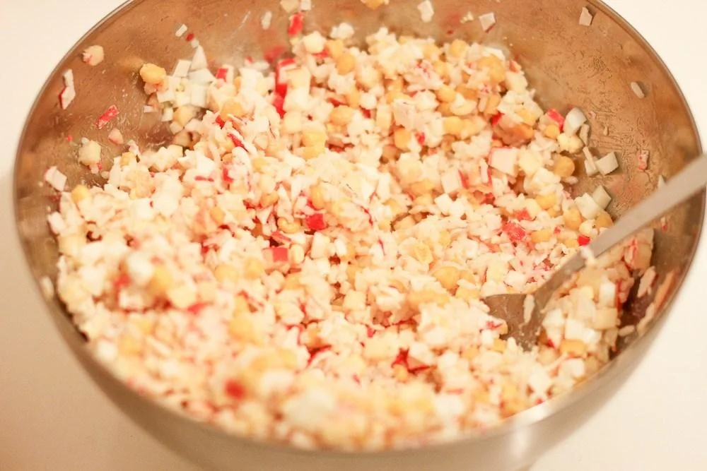 Ингредиенты для приготовления Крабовый салат с яблоками и рисом: