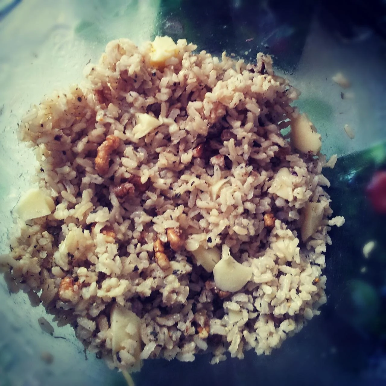 ШАГ 3 Орехи поломать руками, чтобы остались крупные кусочки, и добавить к рису.
