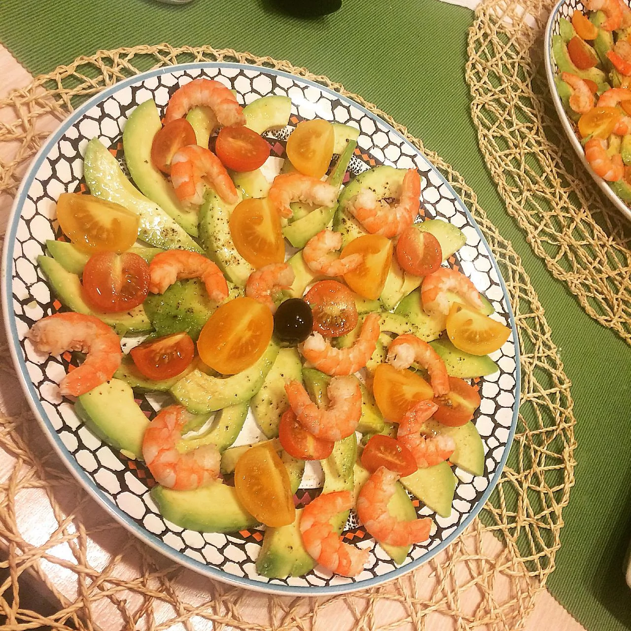 Ингредиенты для приготовления Салат с креветками, авокадо и черри: