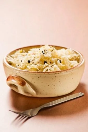 ШАГ 2 Смешать капусту, орехи и мяту с арахисовым маслом и оливками. Добавить 3 столовые ложки винного уксуса, соль и перец.