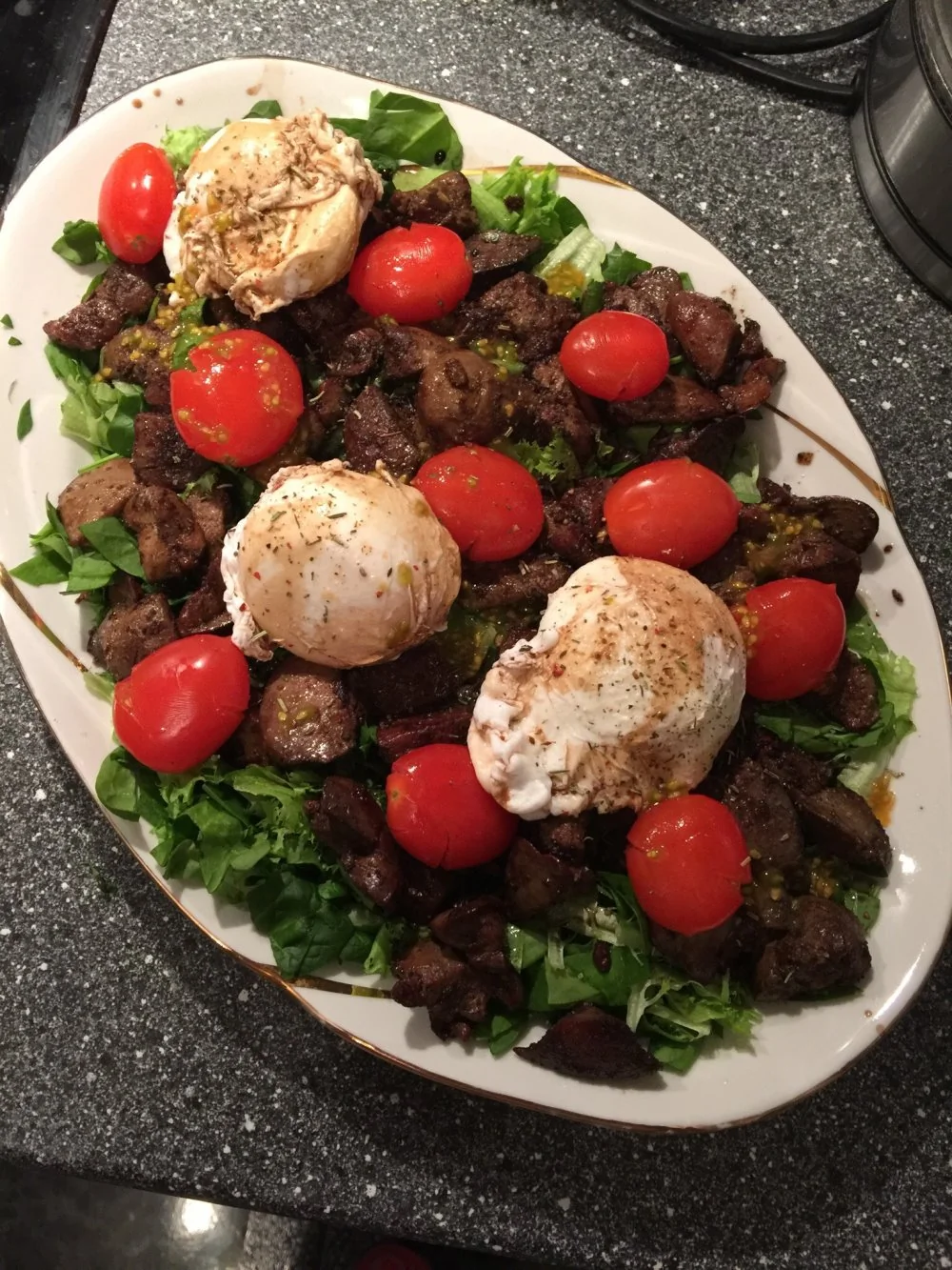 Ингредиенты для приготовления Теплый салат с куриной печенью и яйцами пашот: