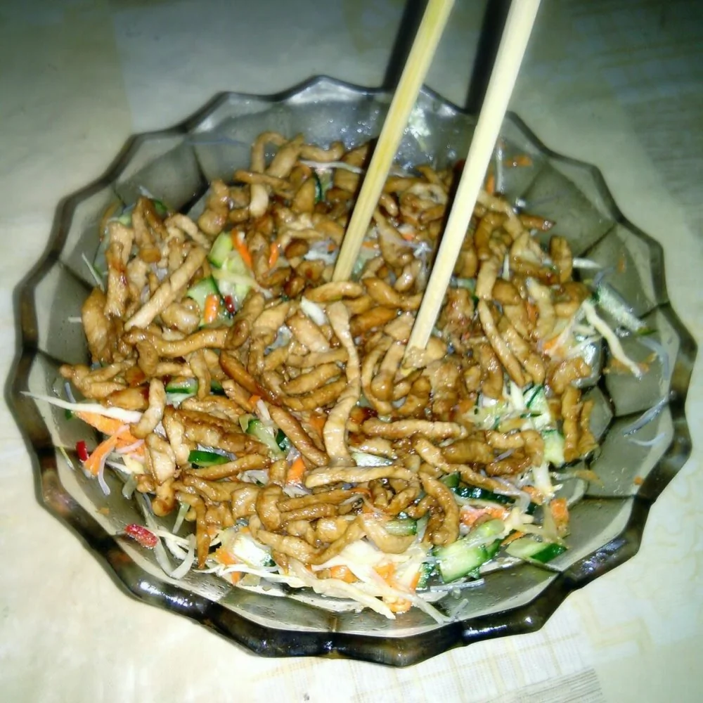 Салат «Хэйхэ» с лапшой и свининой
