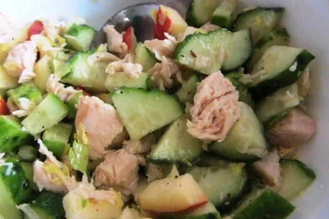 Легкий салат с сельдереем, куриным филе и яблоками
