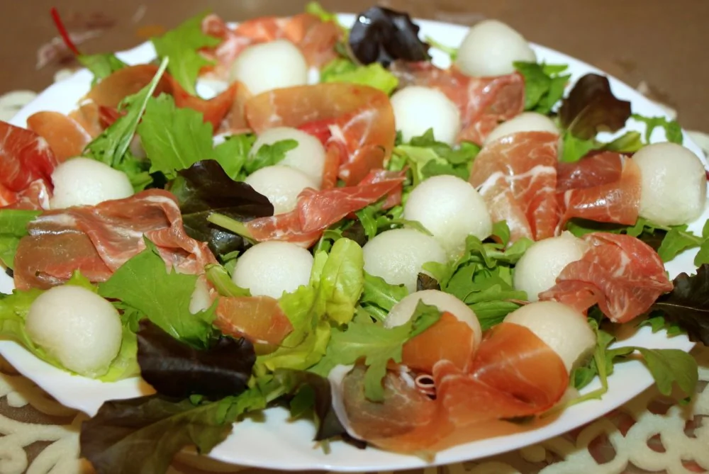 Ингредиенты для приготовления Салат с дыней и прошутто: