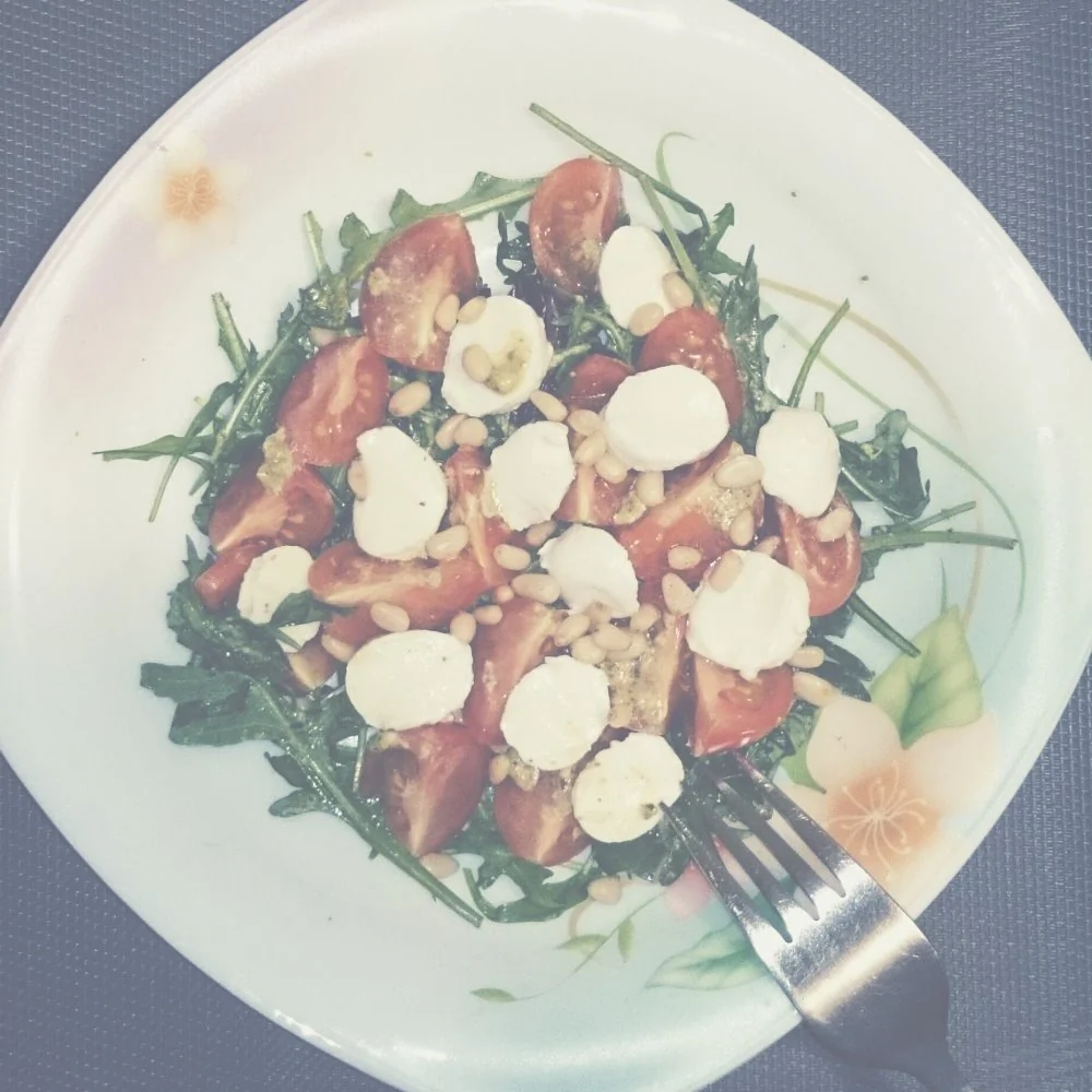 Ингредиенты для приготовления Капрезе с рукколой, песто и кедровыми орешками: