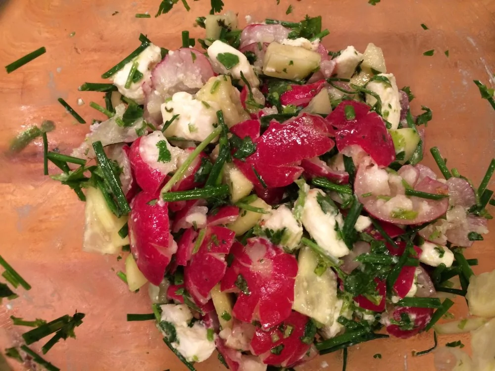 Ингредиенты для приготовления Салат из давленного редиса с фетой: