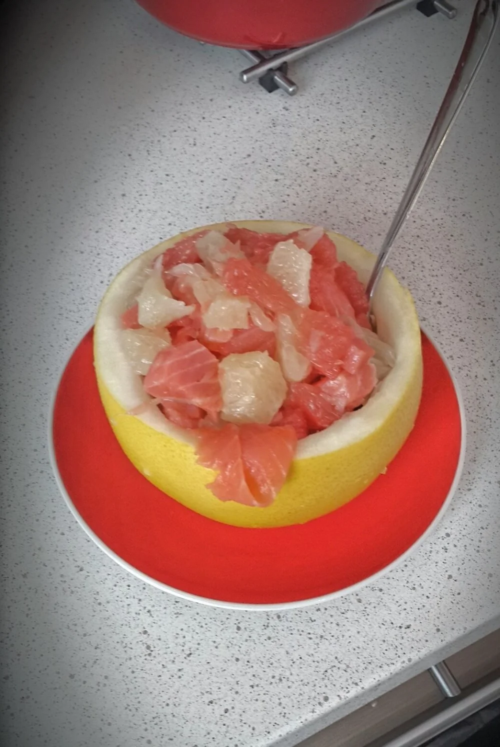 ШАГ 1 Очистить помело, выудив мякоть, но аккуратно, чтобы не пошел сок.