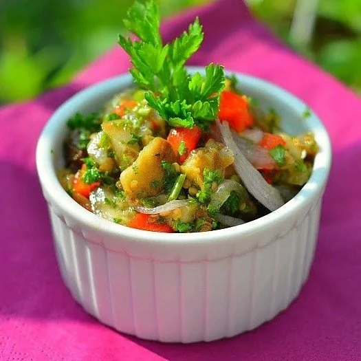Ингредиенты для приготовления Салат с баклажанами и сладким перцем: