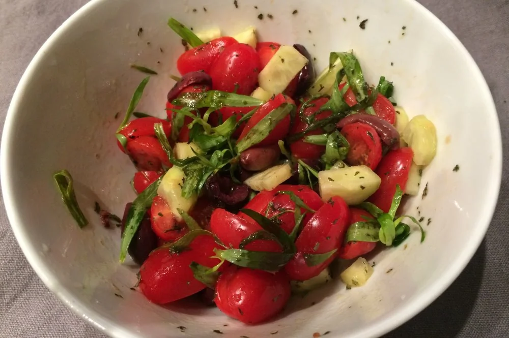 Ингредиенты для приготовления Салат из помидоров черри с тархуном в греческом стиле:
