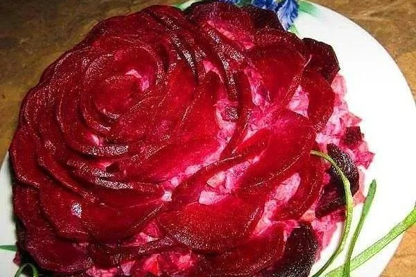 ШАГ 3 Свеклу тонко нарезать на кружочки. Воткнуть по кругу, начиная сверху.