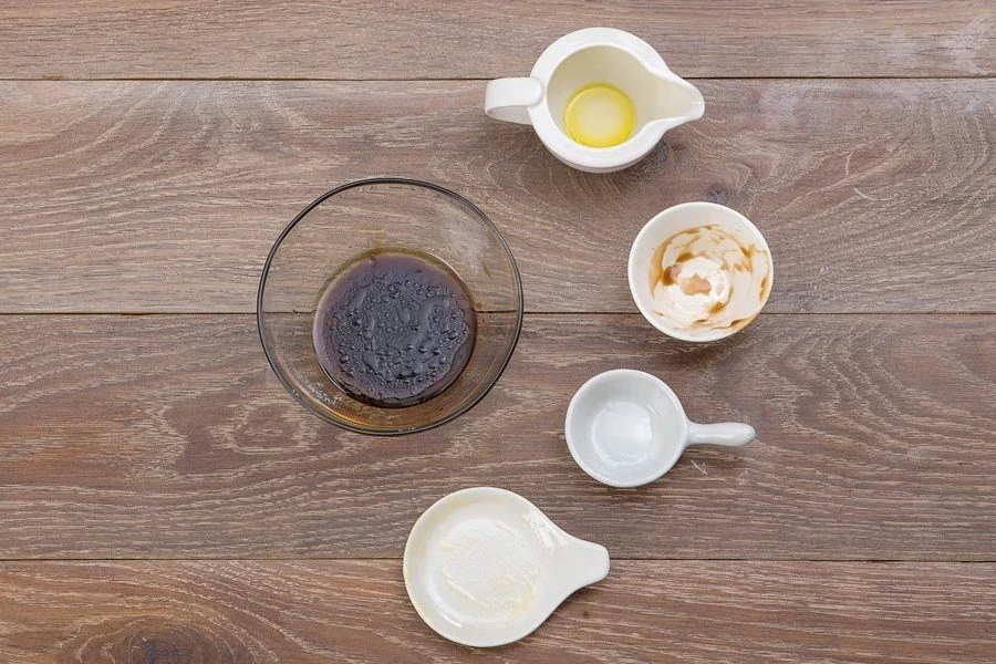 ШАГ 6 Смешайте 35 мл оливкового масла с медом, наршарабом и уксусом.