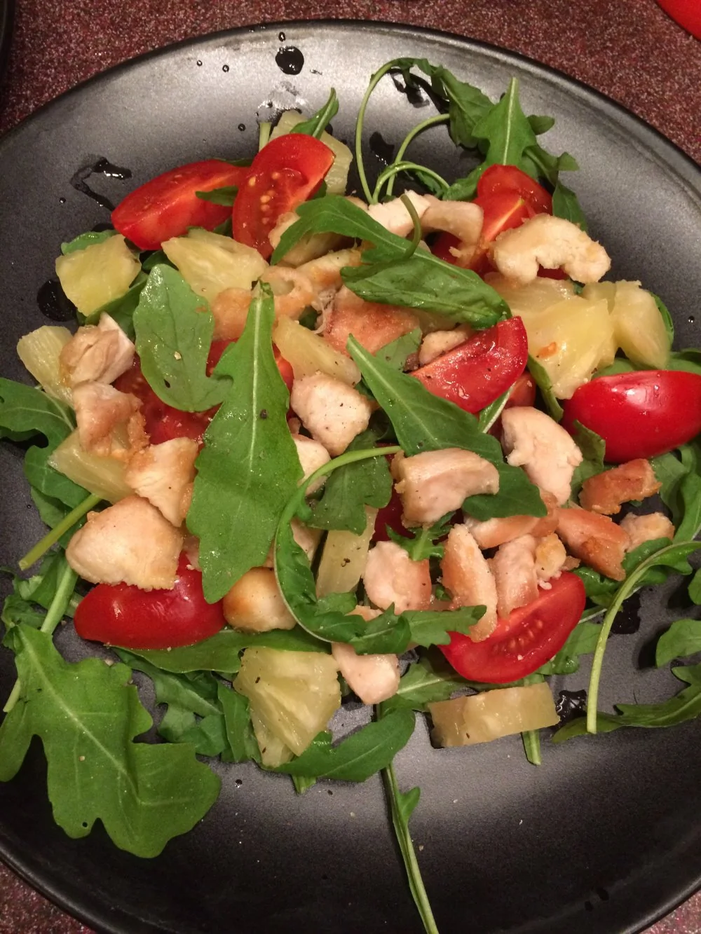 Ингредиенты для приготовления Салат с ананасом, курицей и рукколой:
