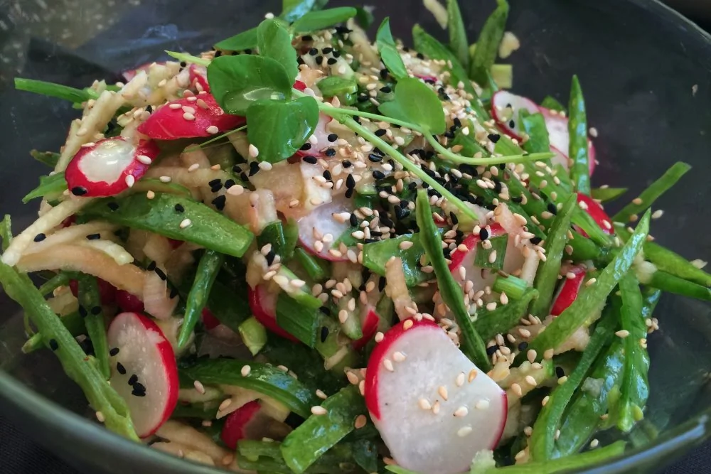Ингредиенты для приготовления Весенний салат из горошка и редиса с кунжутом: