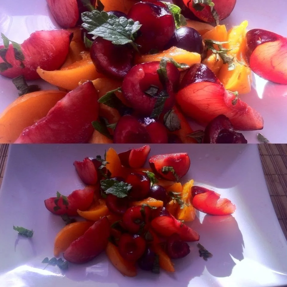 Легкий салат с абрикосом, черешней и сливой