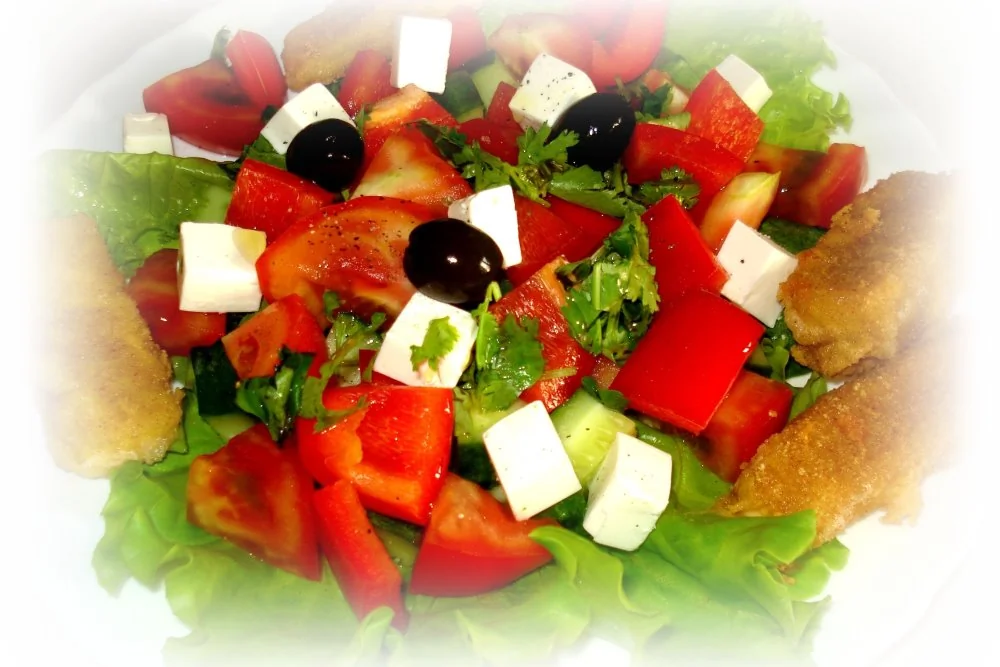Ингредиенты для приготовления Греческий салат с жареным сыром: