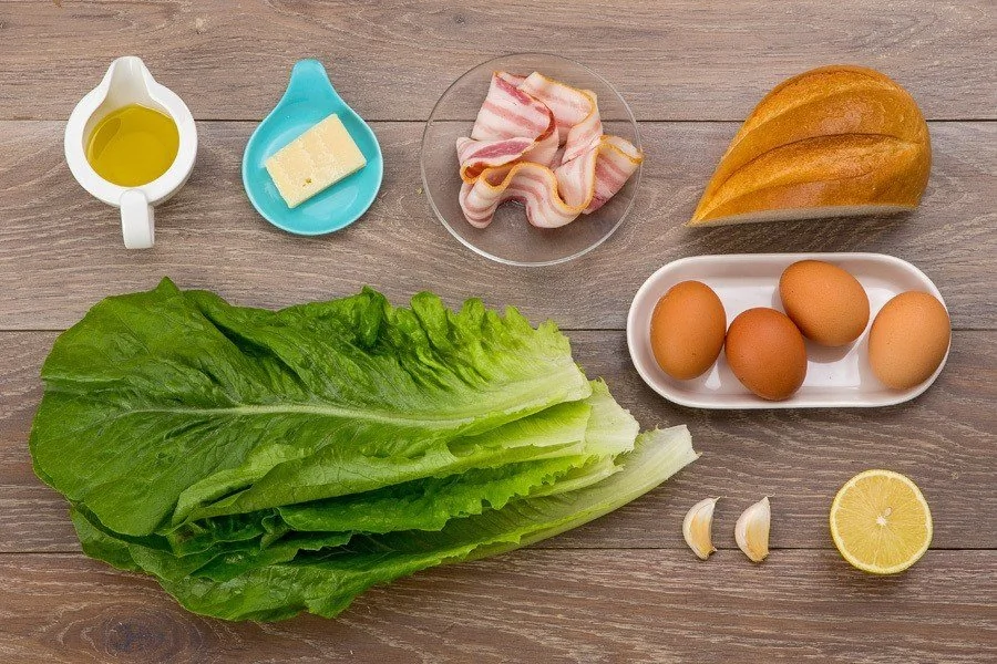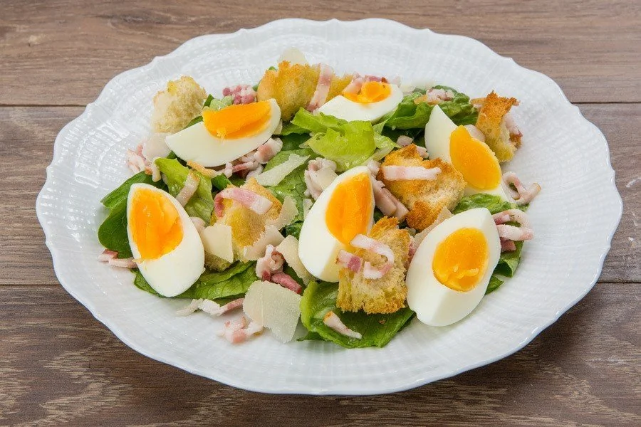 Ингредиенты для приготовления Теплый салат с яйцом и беконом: