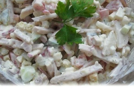 Ингредиенты для приготовления Весенний овощной салат с копченым сыром и окороком: